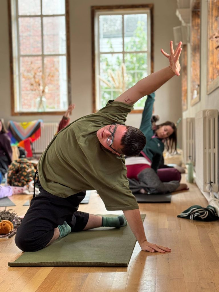Lou is a queer yoga teacher, massage therapist, and arts facilitator whose work sits at the intersection of wellness and social justice. They specialise in trauma informed, accessible, and community based yoga and arts.